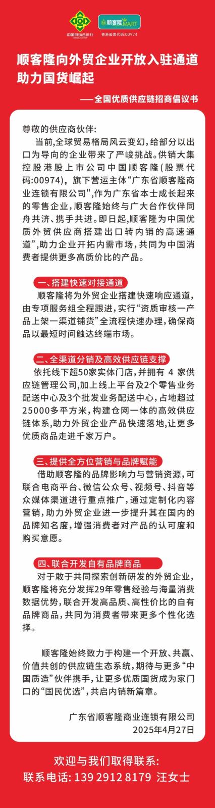 • 順客隆向外貿(mào)企業(yè)開(kāi)放入駐通道,助力國(guó)貨崛起! 2025-04-28