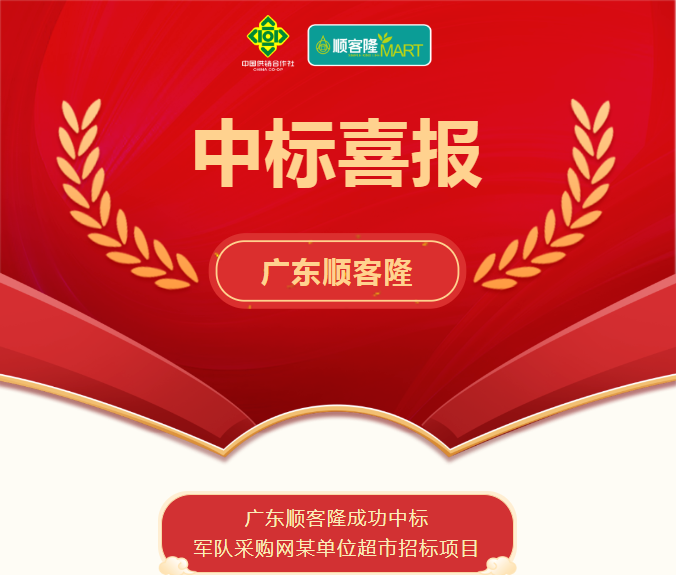 • 【喜訊】廣東順客隆成功中標(biāo)軍隊(duì)采購(gòu)網(wǎng)某單位超市招標(biāo)項(xiàng)目 2025-04-28